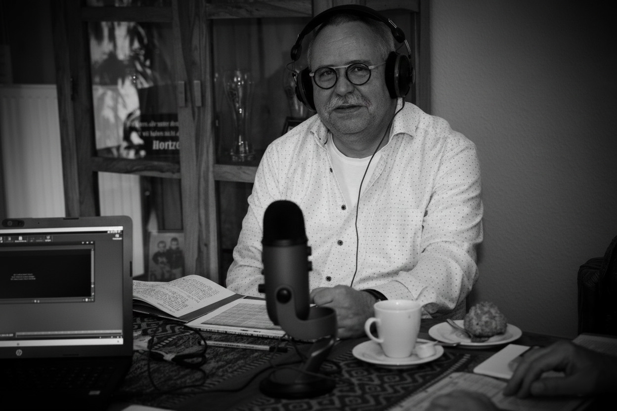 Joachim Stanitzek, unser Stammtischfreund und Fotograf, hat diesen Moment – wie schon bei der 150. Sendung im Januar 2022 – im Bild festgehalten.